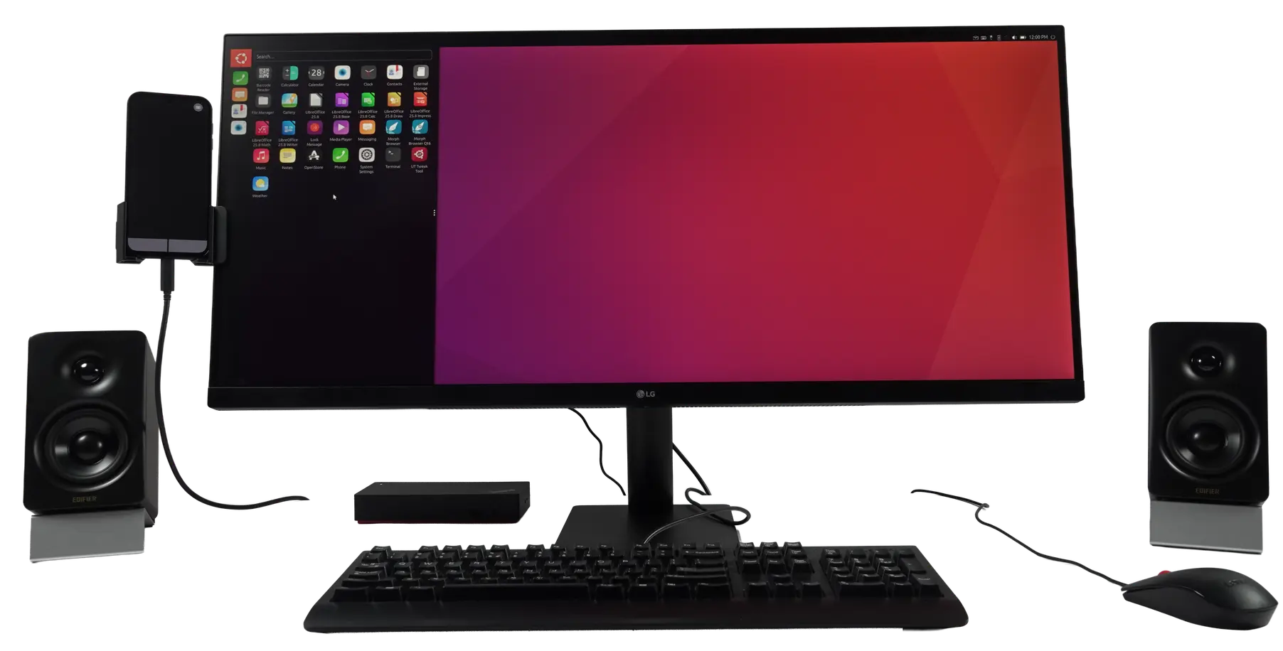 Seamlessly continue your work by plugging your phone into a display to extend to a full desktop, or run it from your computer.